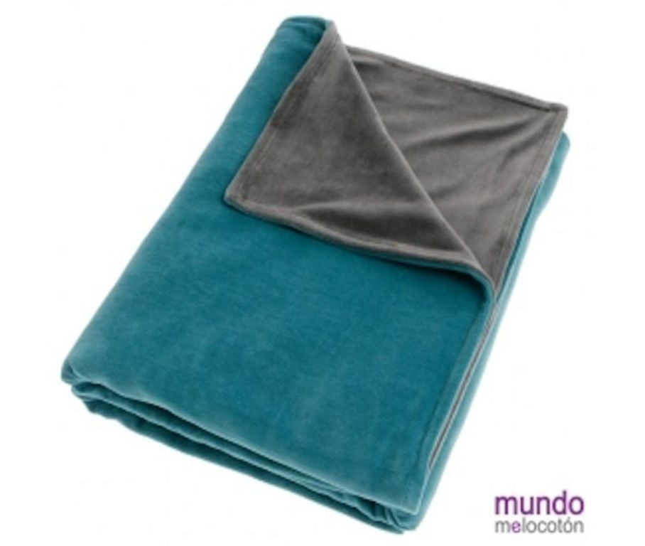 Sehr weiche Velours-Decke mit zwei verschiedenen Seiten in 2 Farbkombinationen der neuen belgischen Marke Mundo Melocoton. Hergestellt aus super weichem Velours.