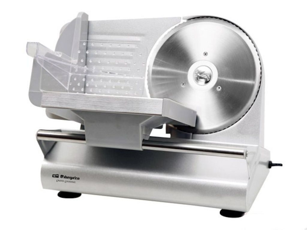Vollmetallgehäuse und große Mehrzweck gezackte Klinge aus rostfreiem Stahl (Ø19 cm). Leicht gebogene Metallplatte reinigen.