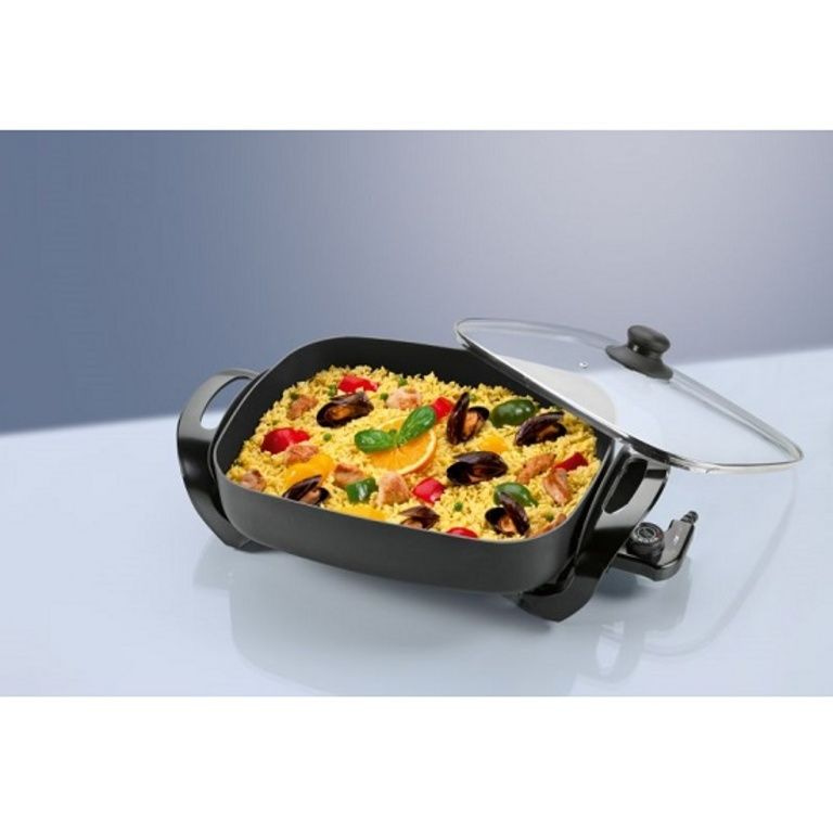 Die partypan von Clatronic PP 3411 ist sehr vielseitig und kann zum Kochen verwendet werden, Dämpfen, Heizung, Auftauen und Rösten. Mit dieser Pfanne können Sie schnell erwärmen das Essen und warm halten. Die Griffe sind isoliert und der Glasdeckel ist hitzebeständig.