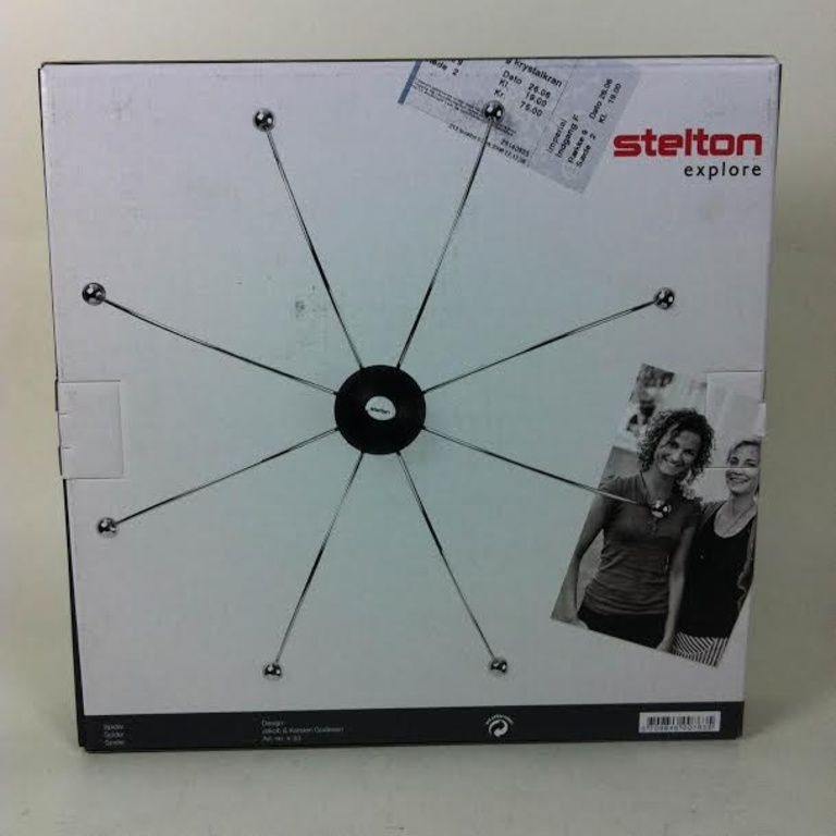 Die Spinne kann mit einer Schraube an den Oberflächen, auf denen die Magnete funktionieren nicht montiert werden. Farbe schwarz. Gestalten Sie Jacob & Karsten Gudiksen. Material: Edelstahl, Kunststoff.