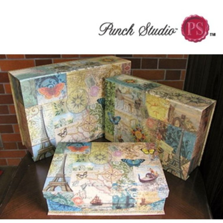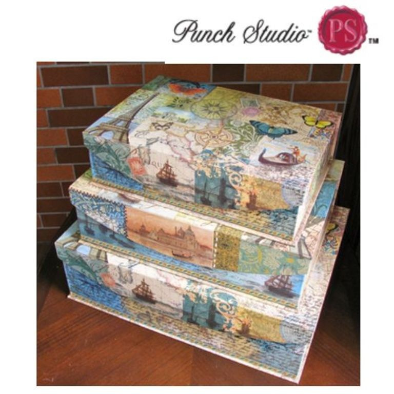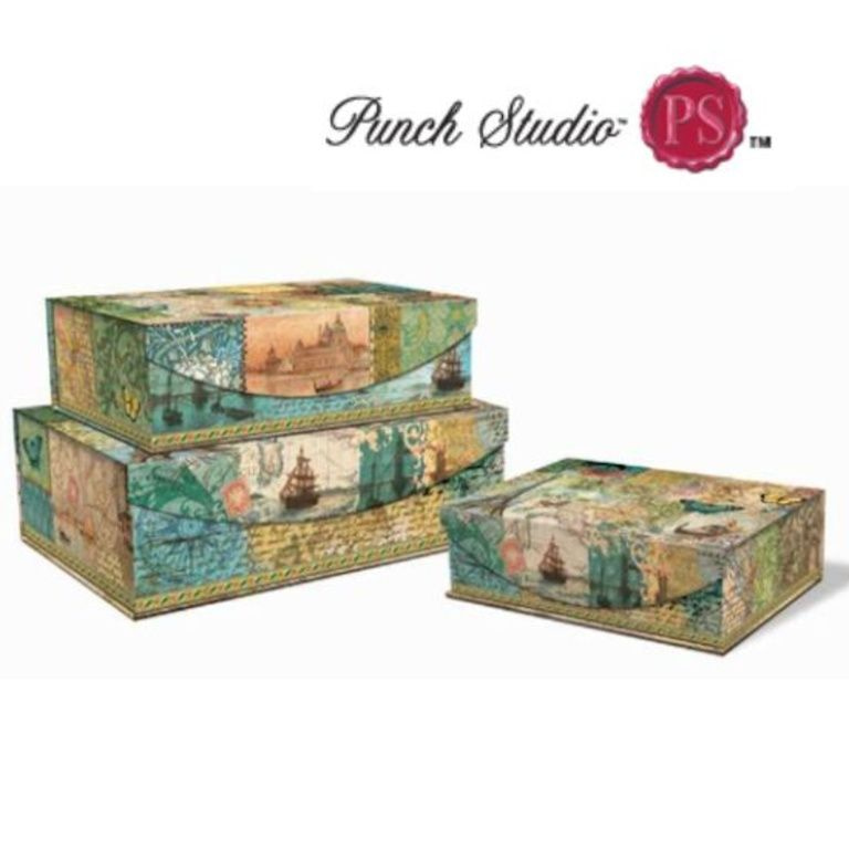 Bestehend aus 3 Boxen aufbewahren. Hergestellt aus stabilem Karton.