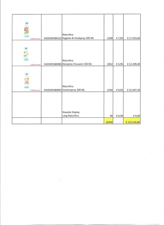 - 1.296 x NaturXtra Textile Spray 200 ML (EAN: 5,425,035,580,030)