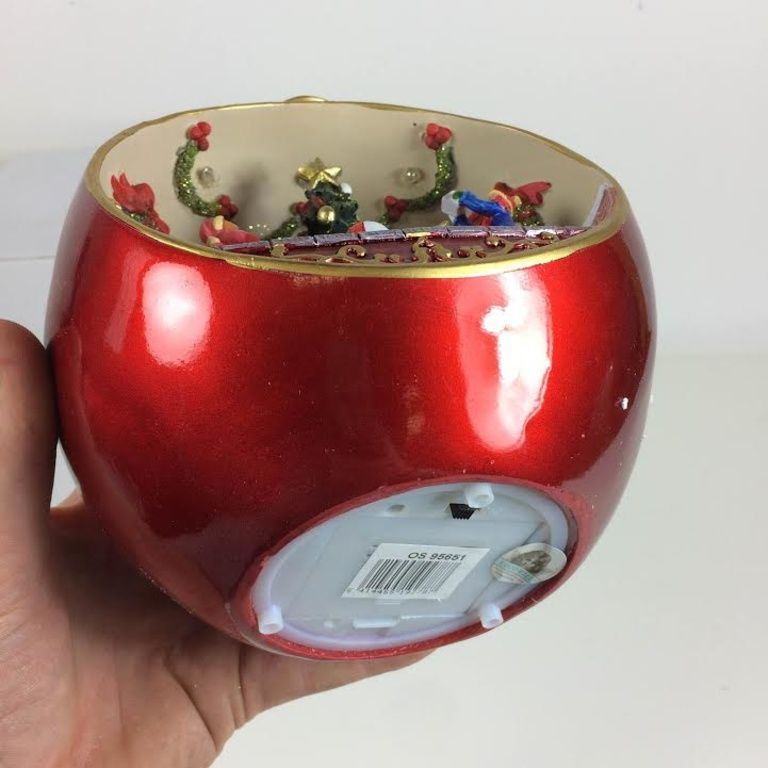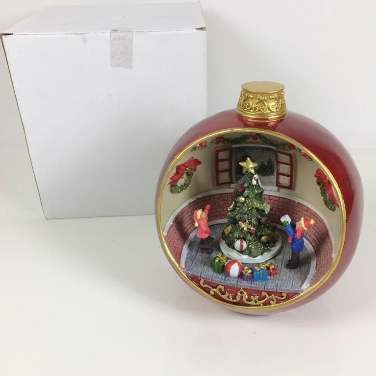 Dekorative Weihnachtskugel mit stimmungsvollen Weihnachtsszene in Stein Pulver und PVC. Mit LED-Licht.