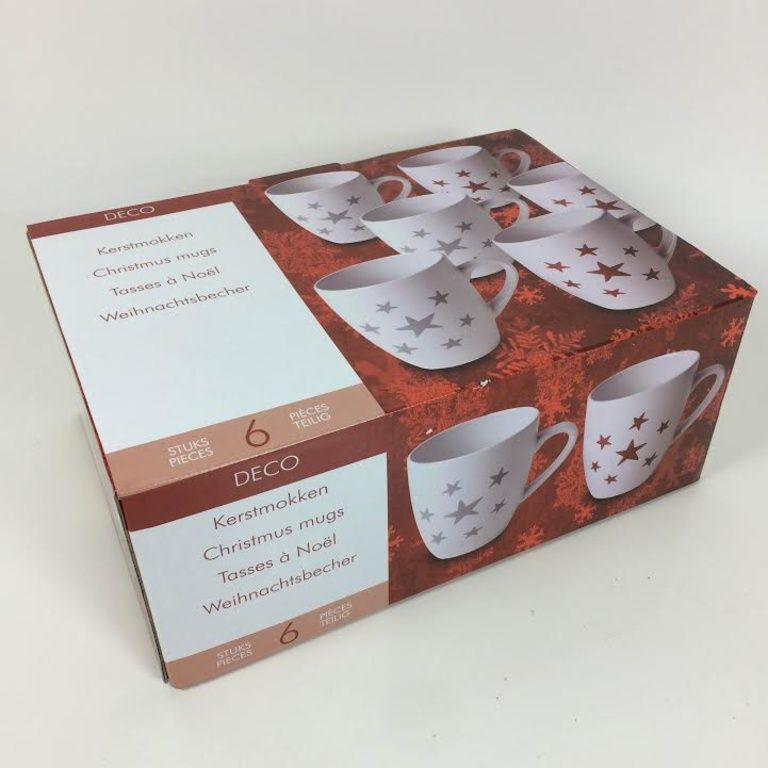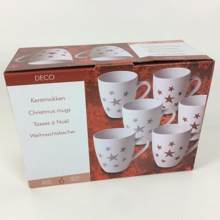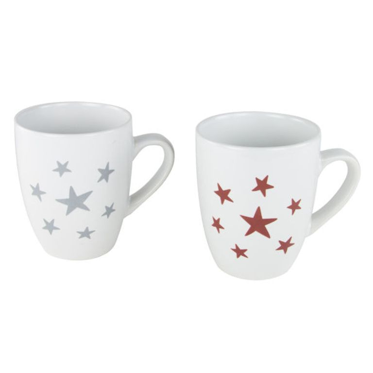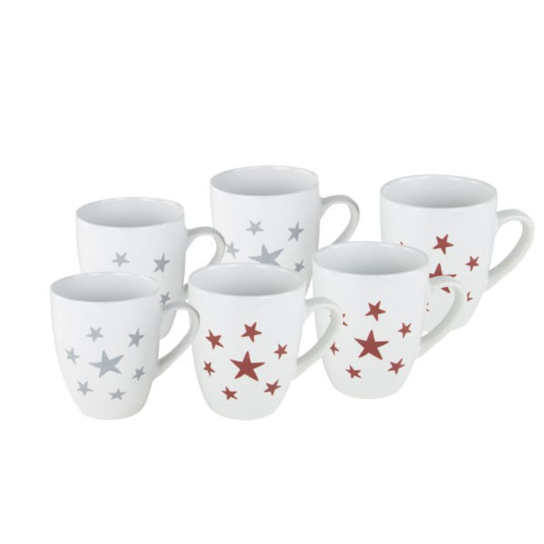 3 x Sankt-Becher weiß mit einem roten Stern-Muster