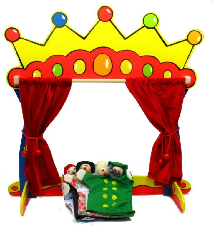 Puppentheater mit Vorhängen und 4 verschiedene Puppen.