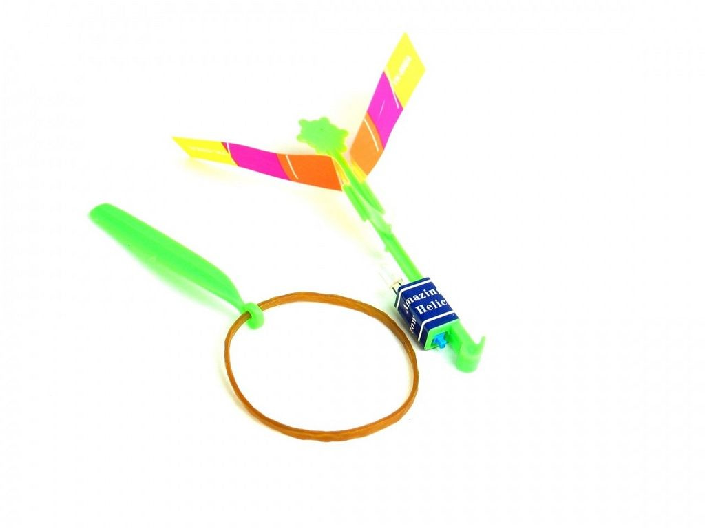 Hängen Sie die elastische hinter dem Hubschrauber und ziehen Sie es fest. Lassen Sie ihn los und er schießt Meter in die Luft. Hubschrauber ist mit Beleuchtung, die einen atemberaubenden Effekt gibt in der Dunkelheit ausgestattet.