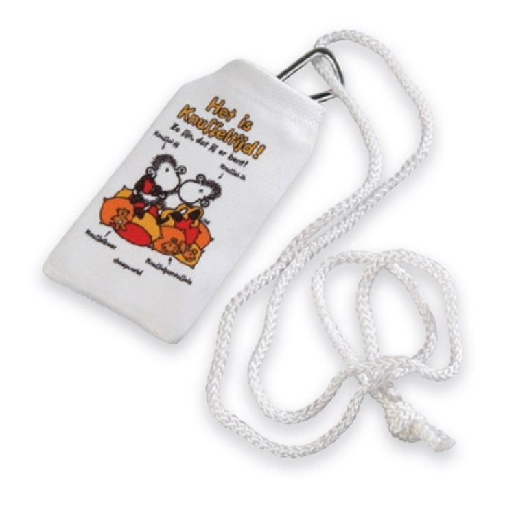 Mini Pouch zum Beispiel: Handy, Schlüssel, Karten mit Karabiner und Umhängeband für um den Hals.