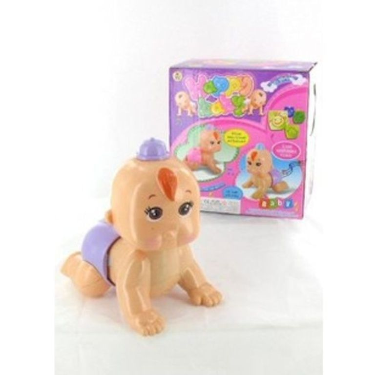 Baby, das vorwärts kriecht und jetzt lacht und plappert.