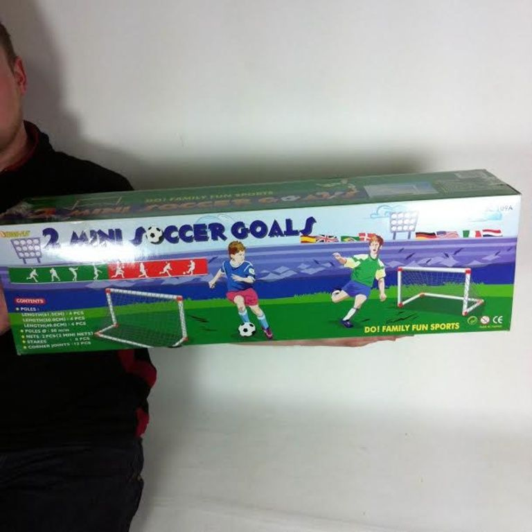 2 Fussball Tore in einem Karton verpackt, für Stunden der Fußball Spaß.