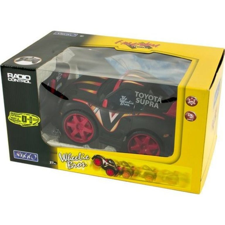Nikko Wheelie Bros. Toyota. Diese robuste Funkwagen können echte Wheelies zu machen! RF-Frequenz von 27 MHz, mit voller Fahrfunktionen. Batterien im Lieferumfang enthalten (1x 9V und 4x 1,5 V AA-Batterien). Verpackt in einer windowbox.