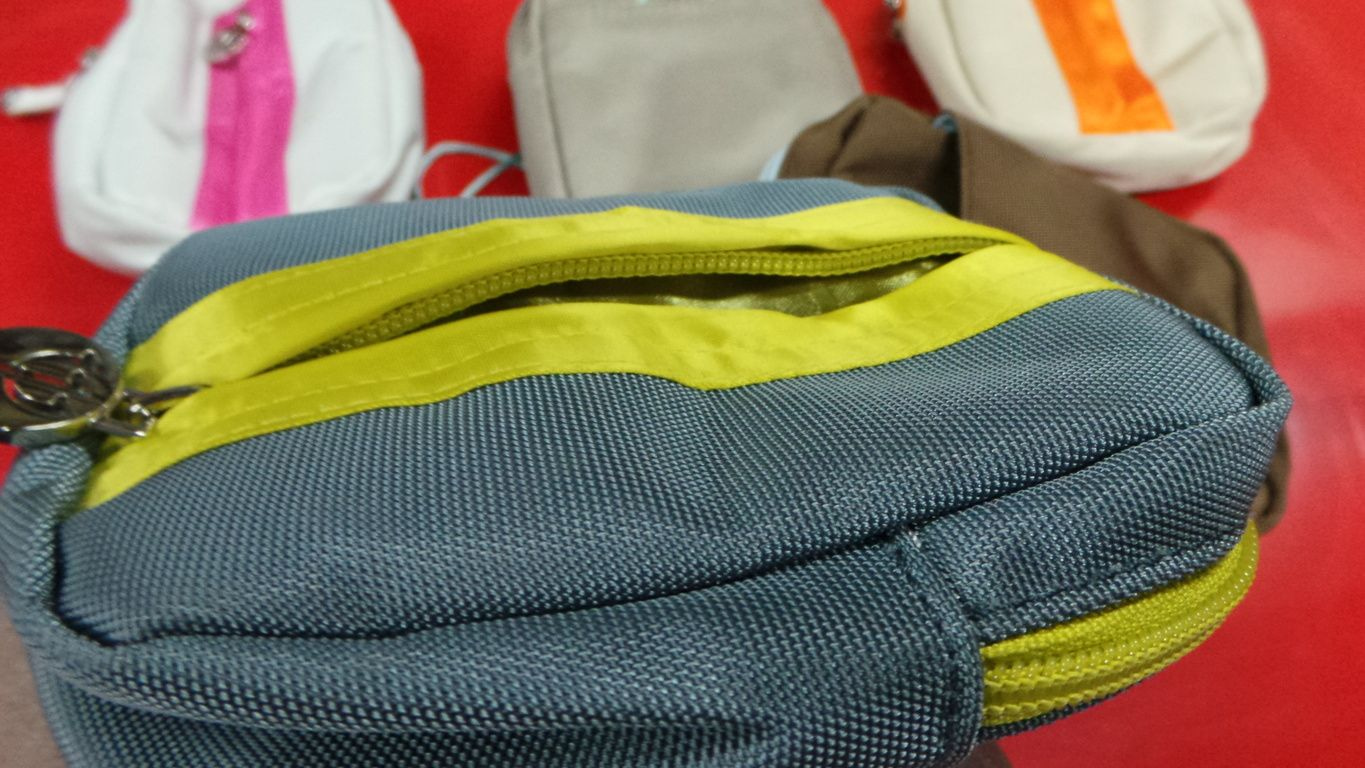 Dieser handliche kleine Tasche hat eine große Tasche mit Reißverschluss in der Mitte, eine kleine Tasche mit Reißverschluss auf der Vorderseite und einer Tasche auf der Rückseite. Die Schnur wird auch Minibag bis zum Hals.