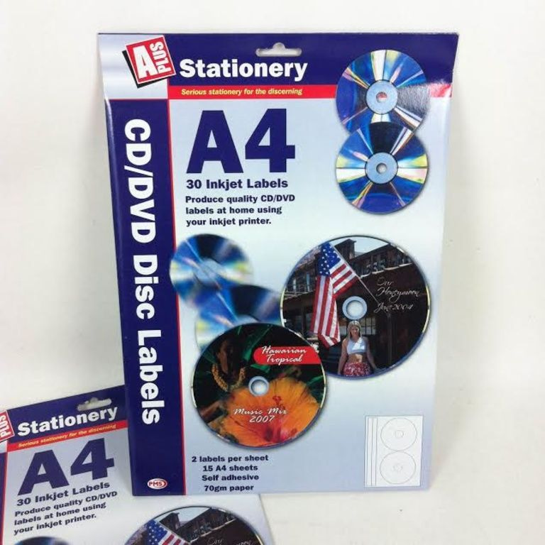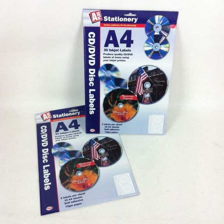 Verpackung besteht aus 30 Inkjet Etiketten für CD oder DVDs.