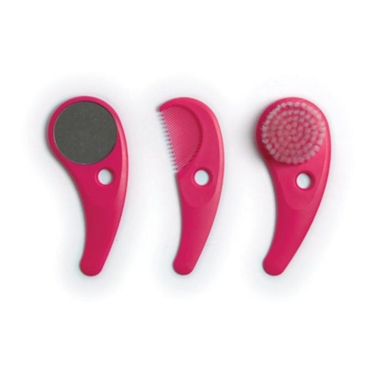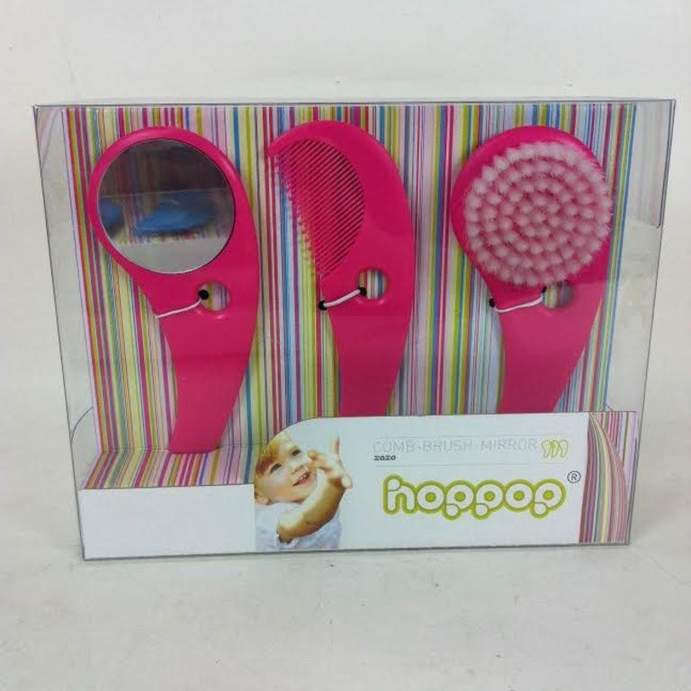 Diese niedlichen Hoppop Zazo Bürste besteht aus einem Kamm, einer weichen Bürste und einem Spiegel. Die Bürste ist extrem weich, der Kamm nicht scharfkantig ist, und der Spiegel ist praktisch unzerbrechlich.