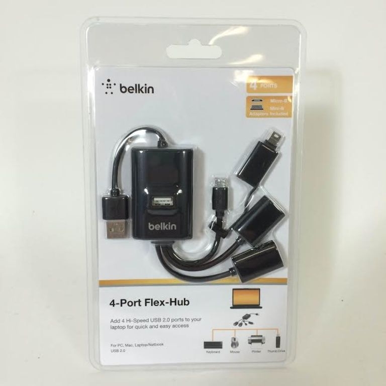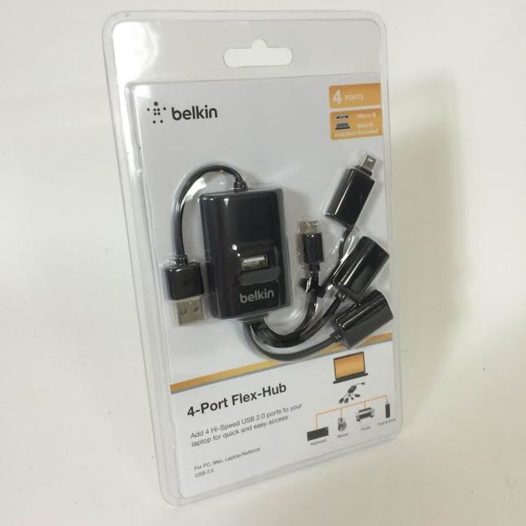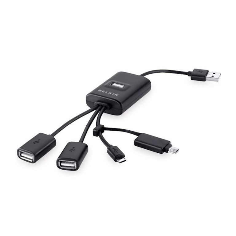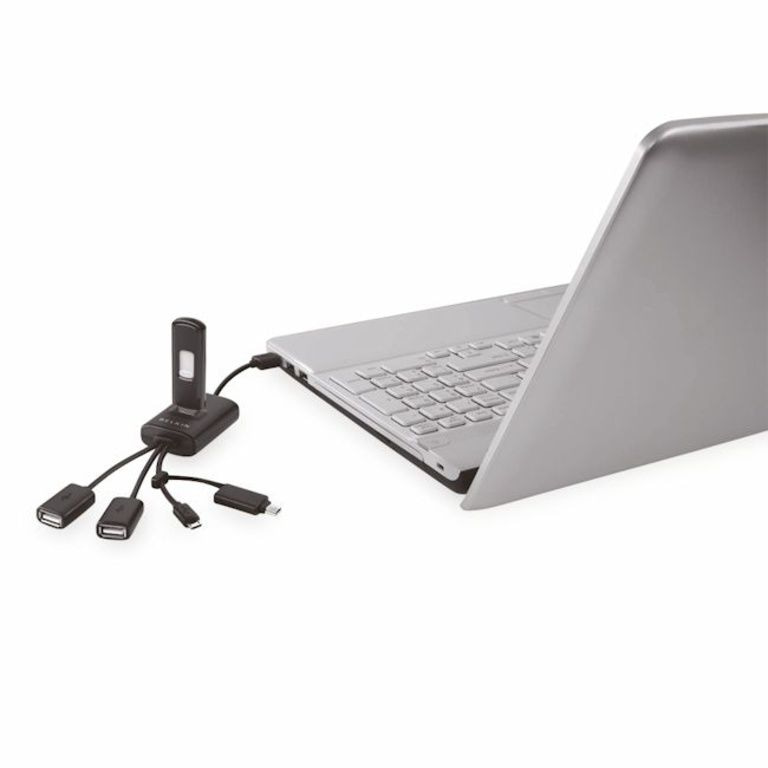 Die Belkin Flexible USB Hub "Calamari 'fügt fünf USB-Ports an den Computer; drei Standard-USB-Ports, ein Mini-USB-Anschluss und ein Micro-USB-Anschluss.