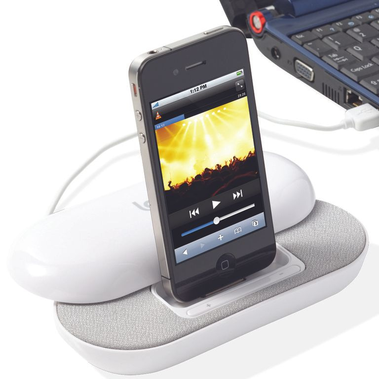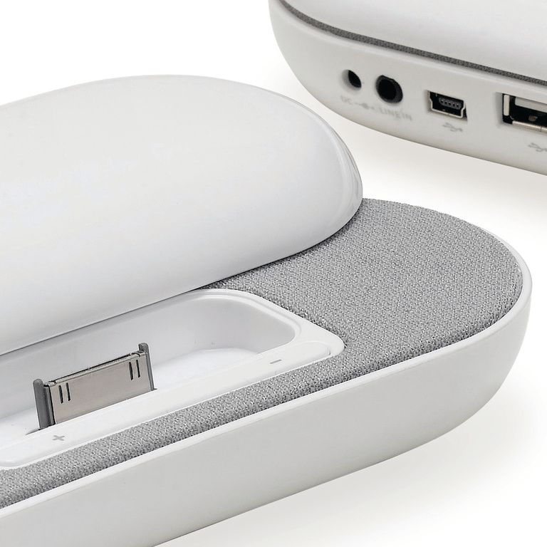 iPhone / iPod (TM) Stereo-Dockinglautsprecher. USB 2.0 bietet drei USB-Ports. Geeignet für Smartphones, MP3 / MP4, Laptops und PCs über die 3,5-mm-Line-Eingangskabel vorgesehen. Leistung 2 x 1.5W iPhone / iPod. Material: ABS.