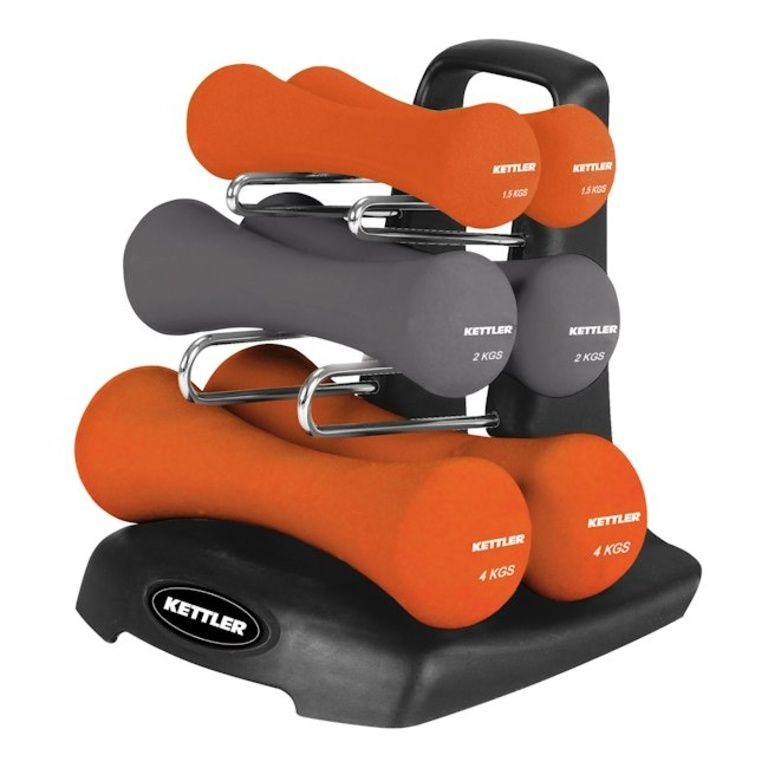 Funktionelle und stabile Kettler Hantel einschließlich Rack! Die Hanteln sind ergonomisch gestaltet und garantieren einen festen Halt während der intensiven Übung.