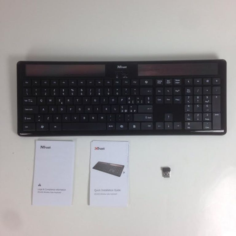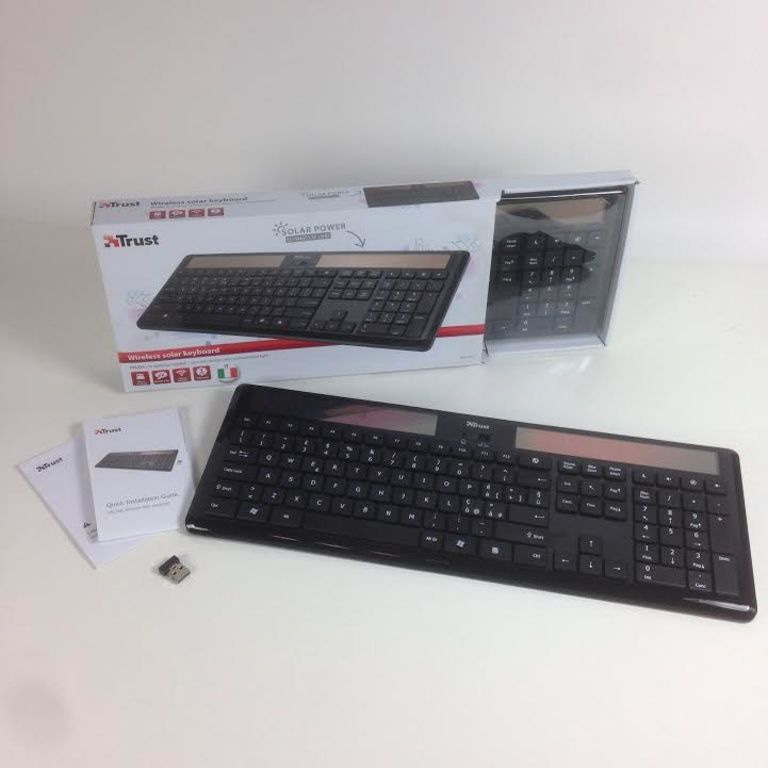 Drahtlose Tastatur mit Solarzellen; Der Ladevorgang wird durch das Sonnenlicht oder Tageslicht erfolgen, so dass keine Batterien erforderlich