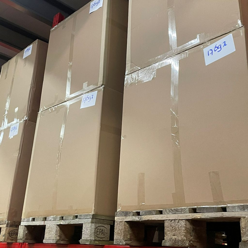 Insgesamt: 64 Palettenkartons = 32 Paletten (1 LKW-Ladung)