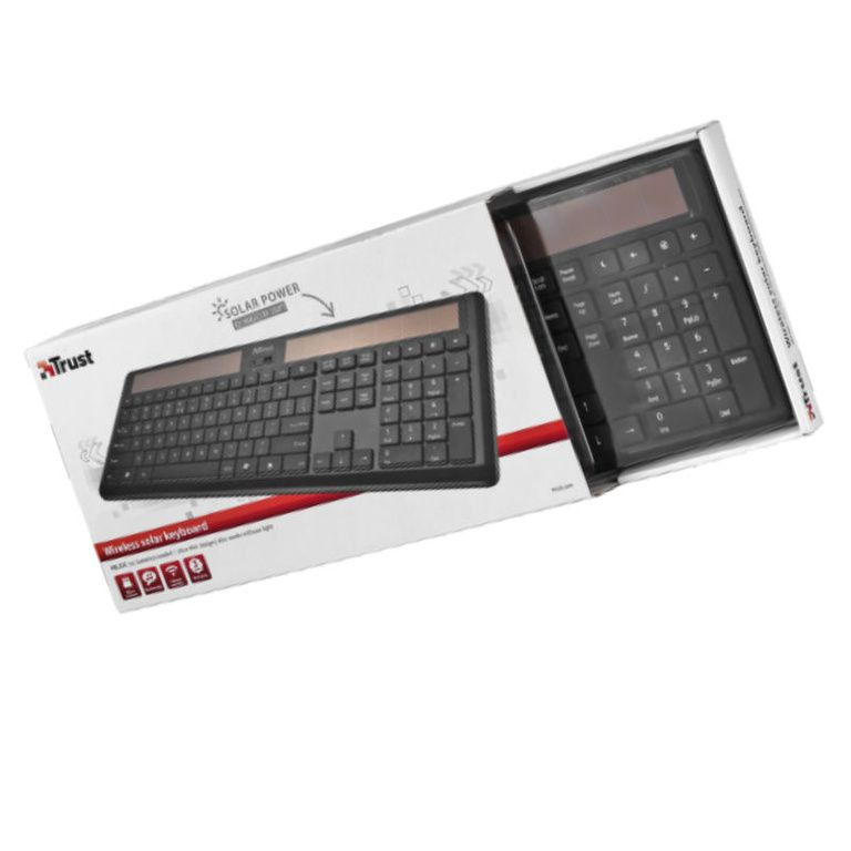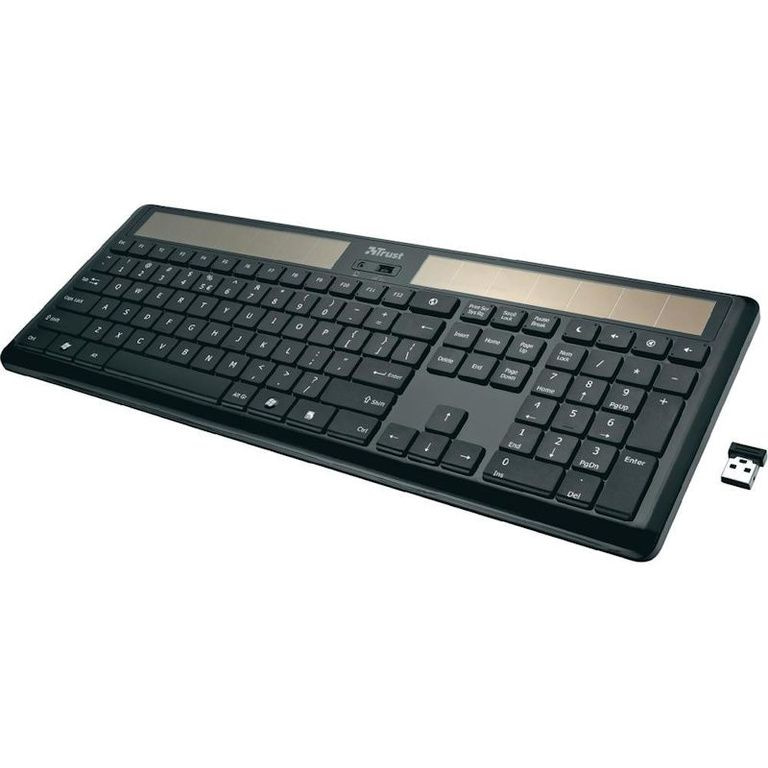 Drahtlose Tastatur mit Solarzellen; Der Ladevorgang wird durch Sonnenlicht oder Tageslicht durchgeführt, so dass keine Batterien benötigt.