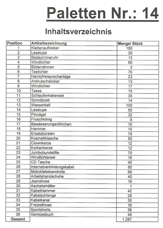 Inhalt Palette: 1.287 St. mehrere Artikel!