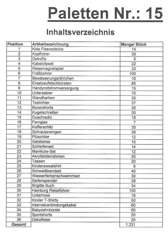 Inhalt Palette: 1.231 St. mehrere Artikel!