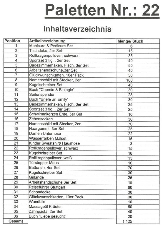 Inhalt Palette: 1.006 St. mehrere Artikel!