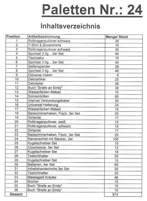 Inhalt Palette: 974 St. mehrere Artikel!