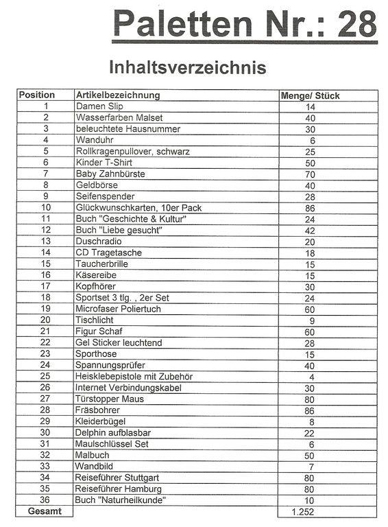 Inhalt Palette: 1.252 St. mehrere Artikel!