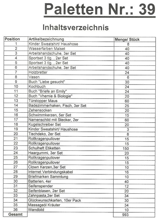 Inhalt Palette: 993 St. mehrere Artikel!