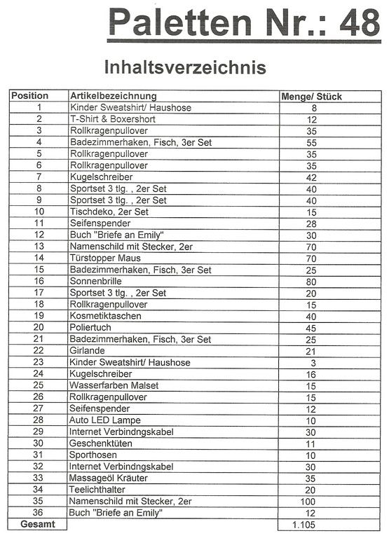 Inhalt Palette: 1.105 St. mehrere Artikel!