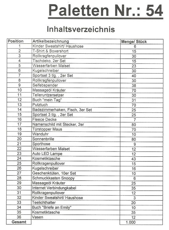 Inhalt Palette: 1.000 St. mehrere Artikel!