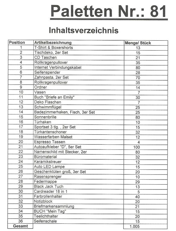 Inhalt Palette: 1.005 St. mehrere Artikel!