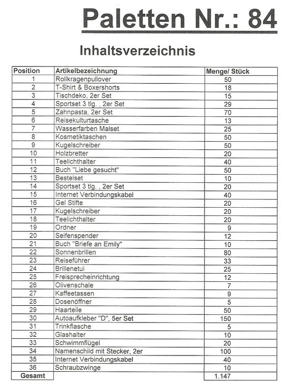 Inhalt Palette: 1.147 St. mehrere Artikel!