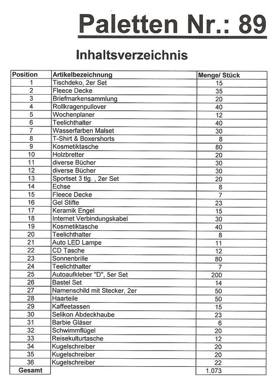 Inhalt Palette: 1.073 St. mehrere Artikel!