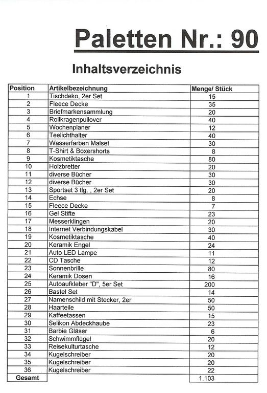 Inhalt Palette: 1.103 St. mehrere Artikel!