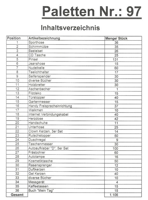 Inhalt Palette: 1.106 St. mehrere Artikel!