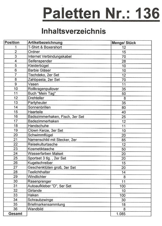 Inhalt Palette: 1.085 St. mehrere Artikel!