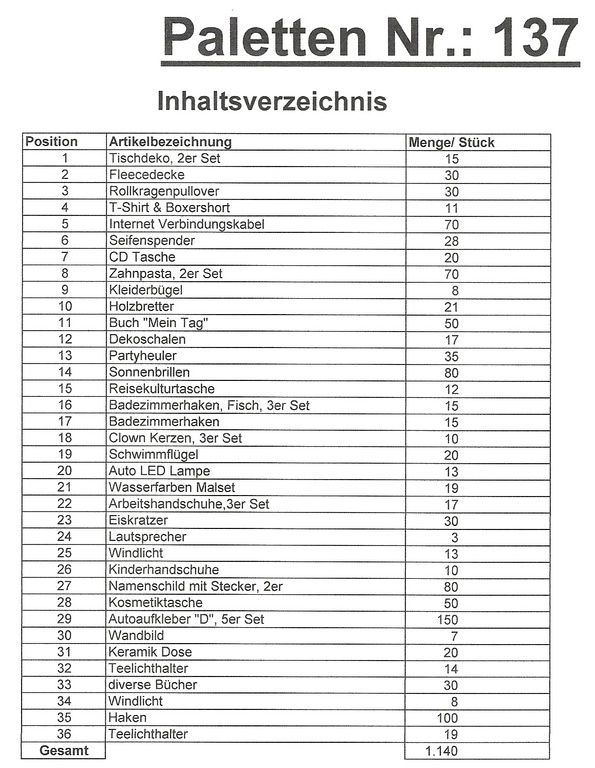 Inhalt Palette: 1.140 St. mehrere Artikel!