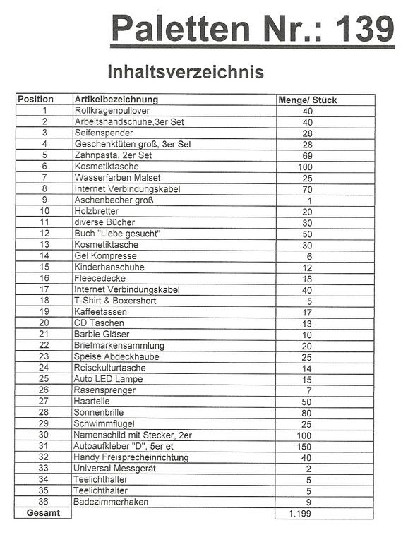 Inhalt Palette: 1.199 St. mehrere Artikel!