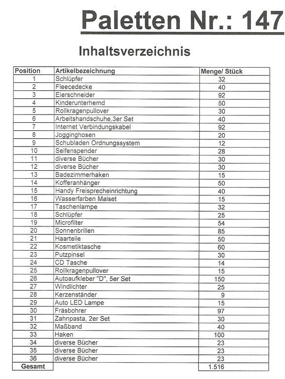 Inhalt Palette: 1.516 St. mehrere Artikel!