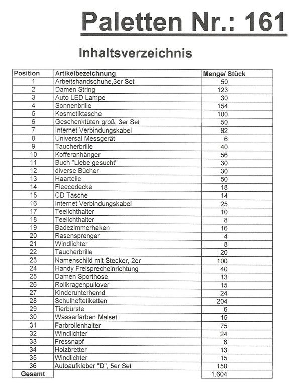 Inhalt Palette: 1.604 St. mehrere Artikel!