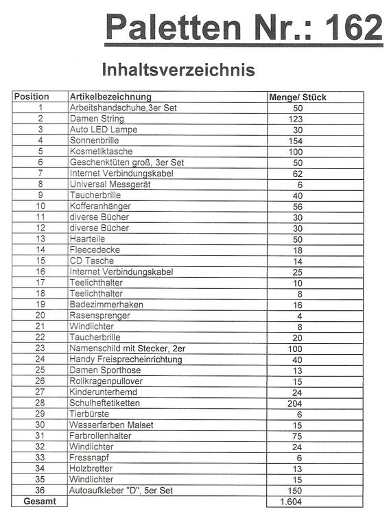 Inhalt Palette: 1.604 St. mehrere Artikel!