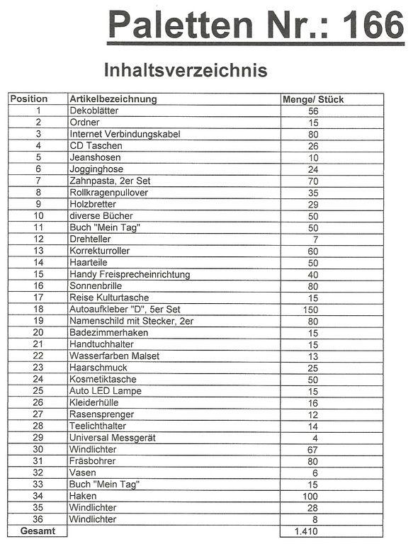 Inhalt Palette: 1.410 St. mehrere Artikel!