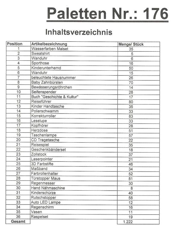 Inhalt Palette: 1.222 St. mehrere Artikel!