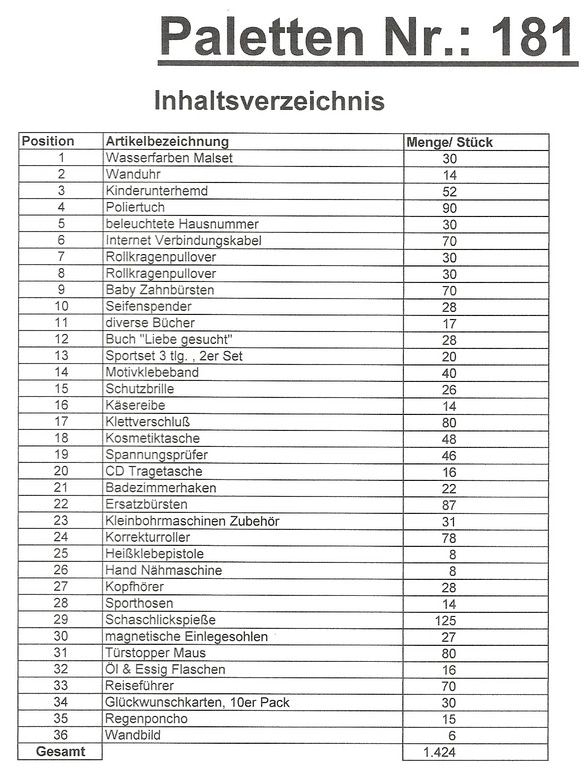 Inhalt Palette: 1.424 St. mehrere Artikel!