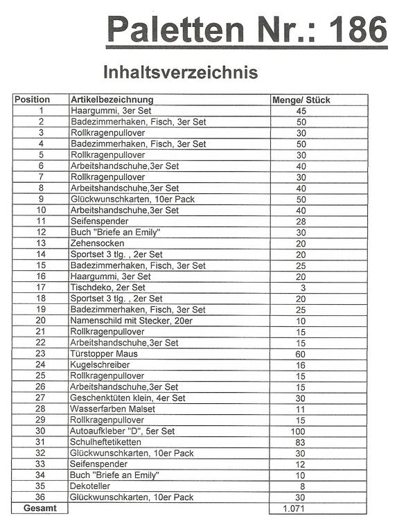 Inhalt Palette: 1.071 St. mehrere Artikel!