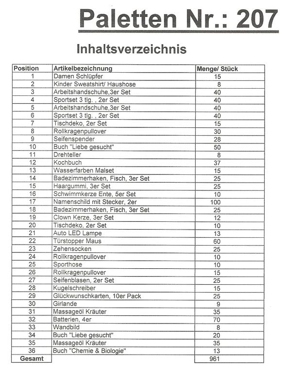 Inhalt Palette: 961 St. mehrere Artikel!