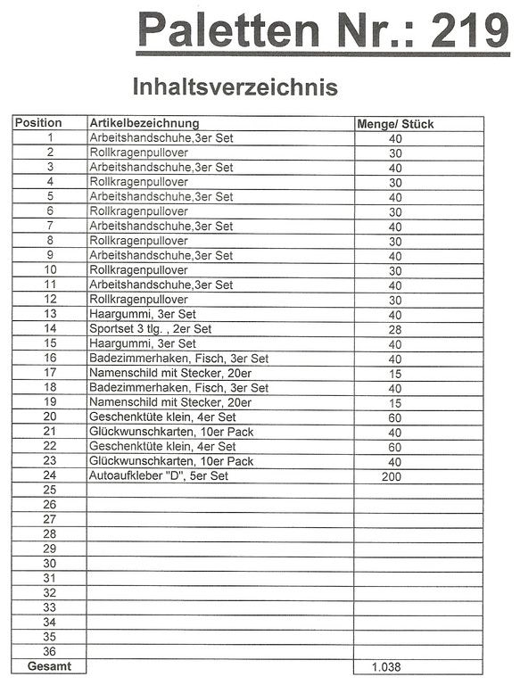 Inhalt Palette: 1.038 St. mehrere Artikel!