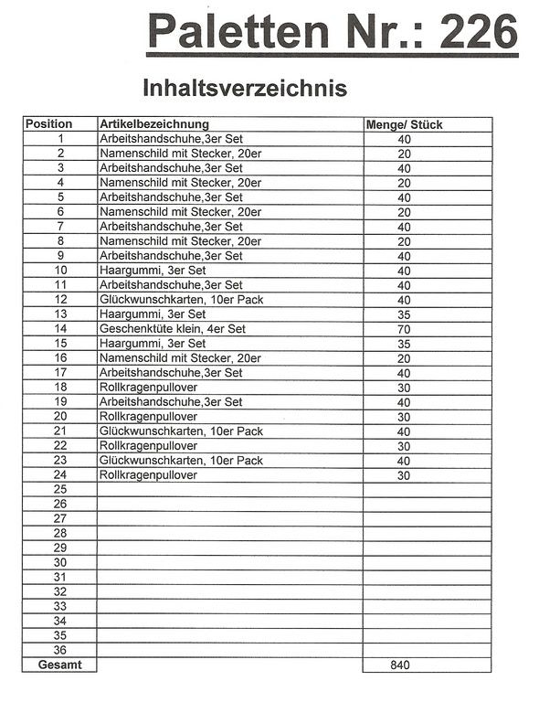Inhalt Palette: 840 St. mehrere Artikel!