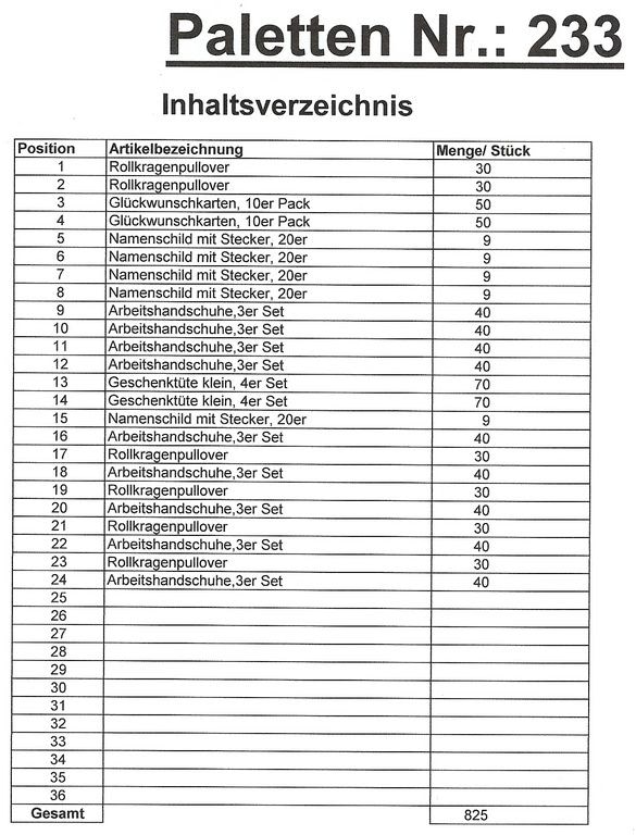 Inhalt Palette: 825 St. mehrere Artikel!